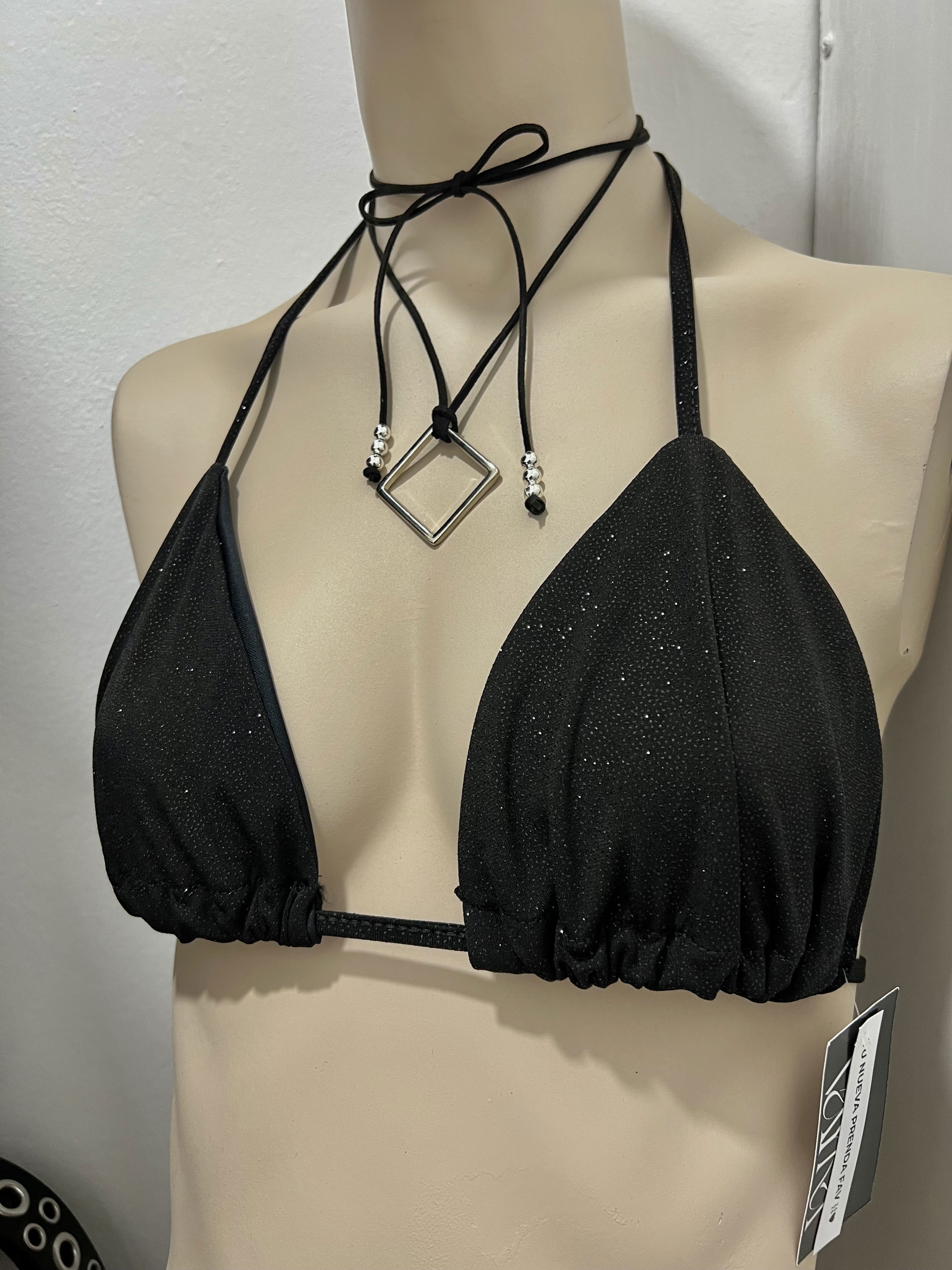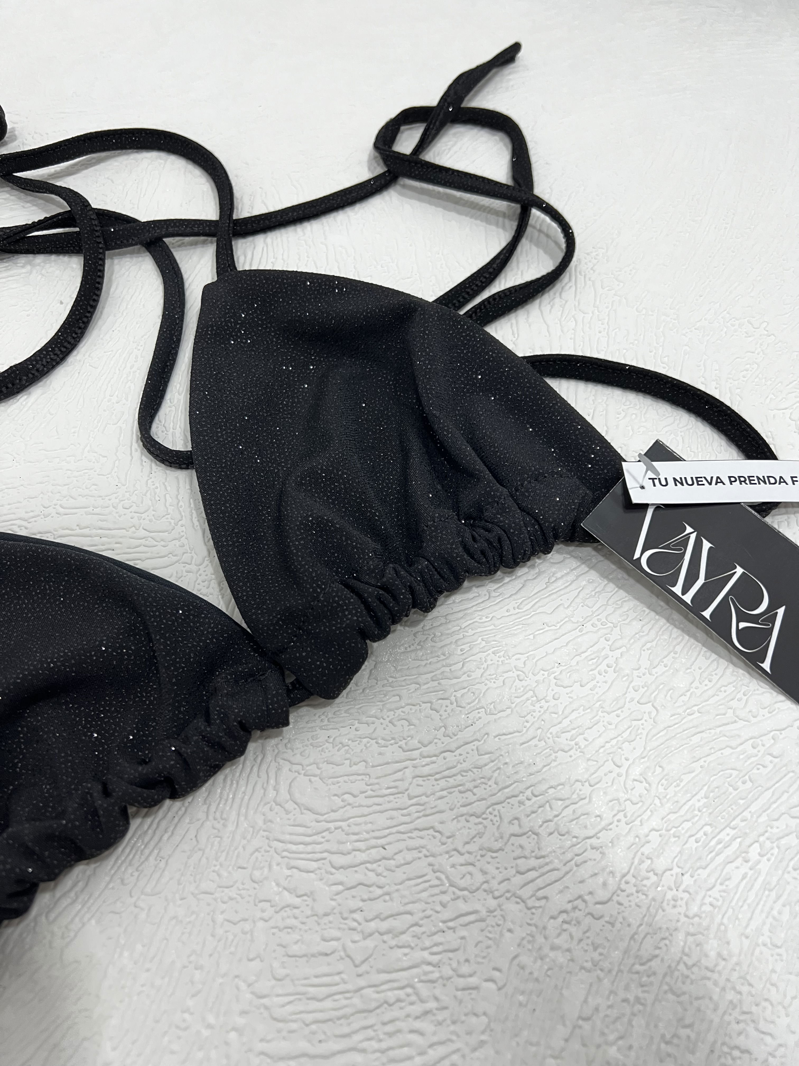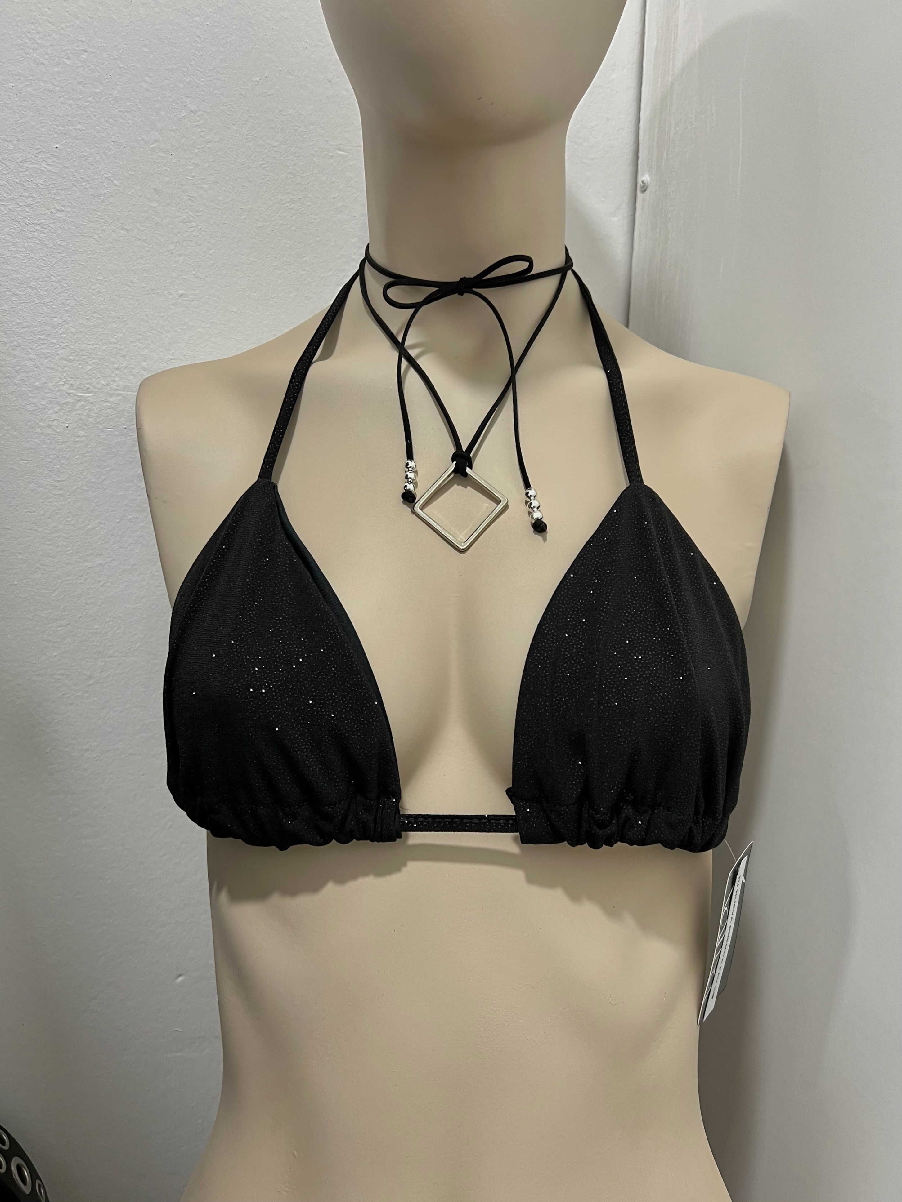 Top tela con brillos y tiras largas , las tazas se corren miden 17cm con la prenda estirada