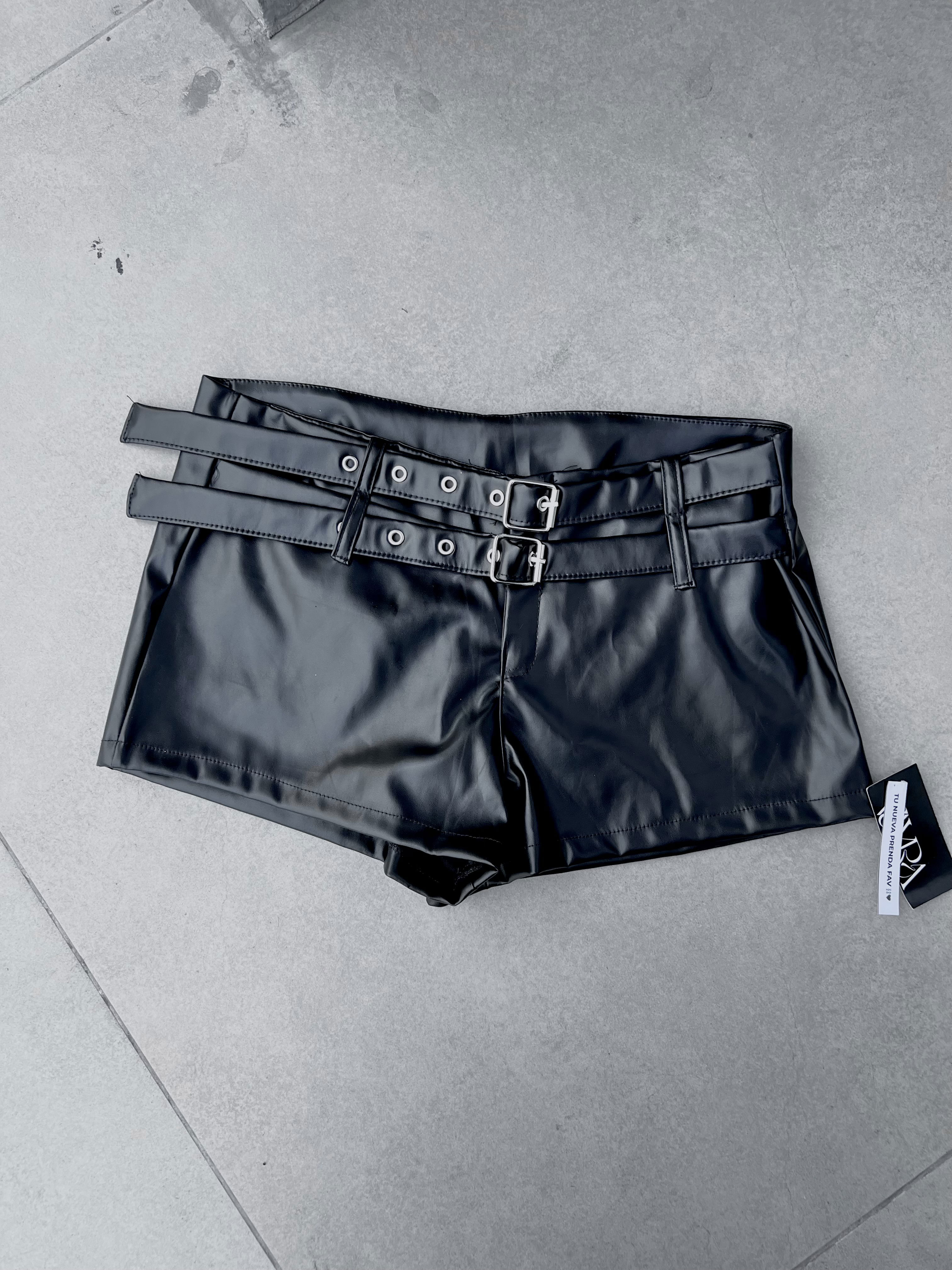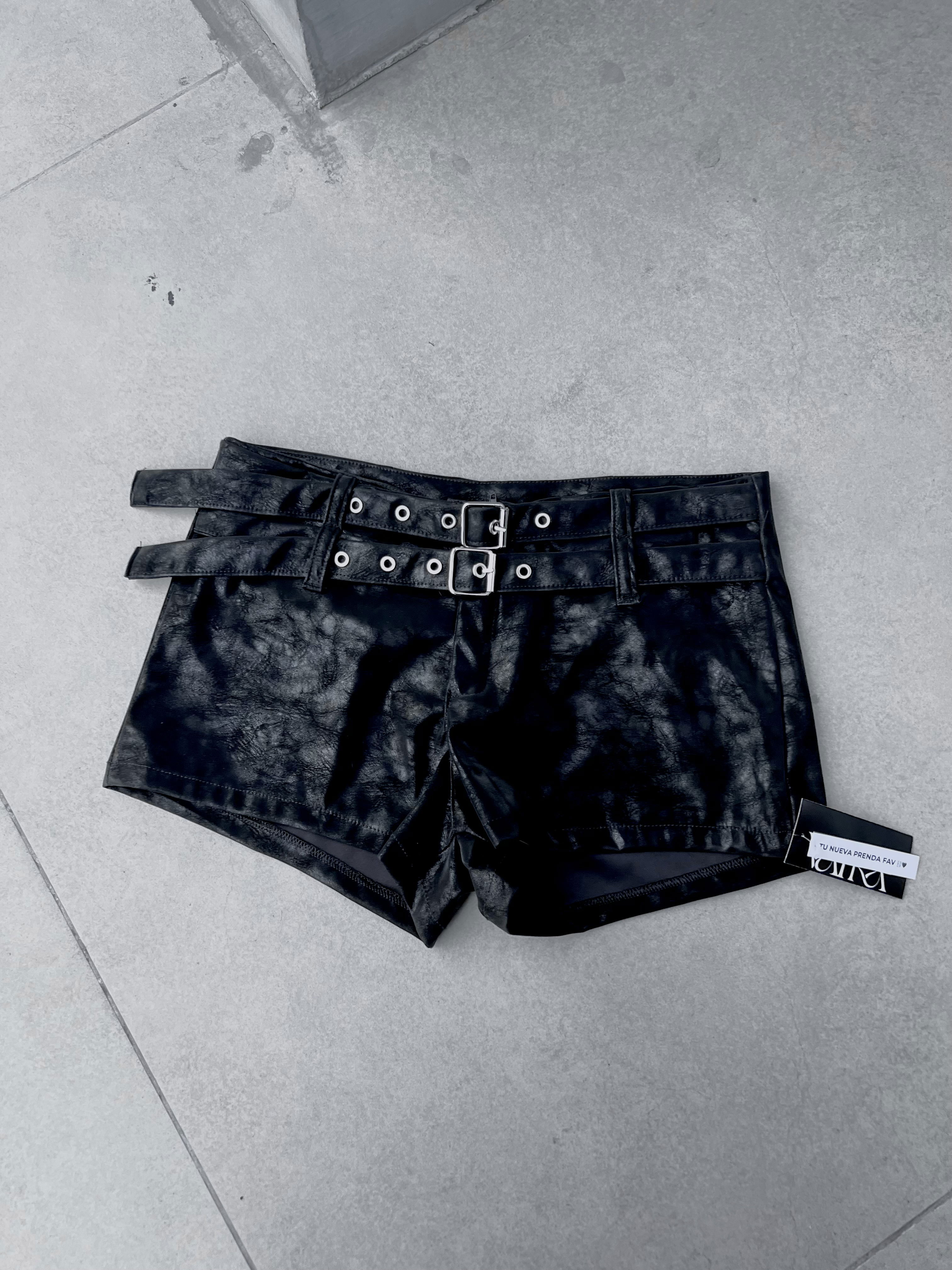 short engomado con doble cinto fino - disponibles en dos texturas diferentes