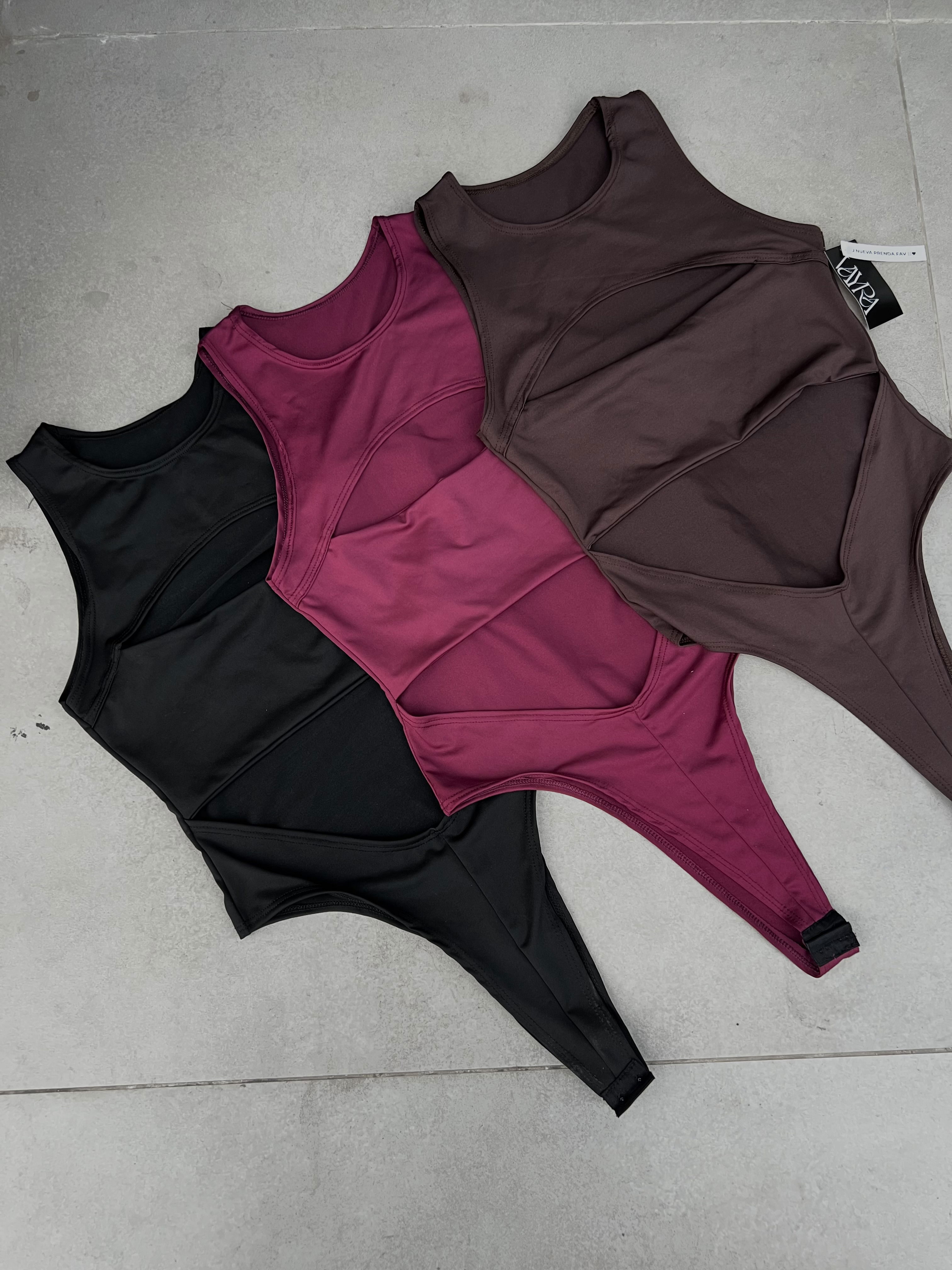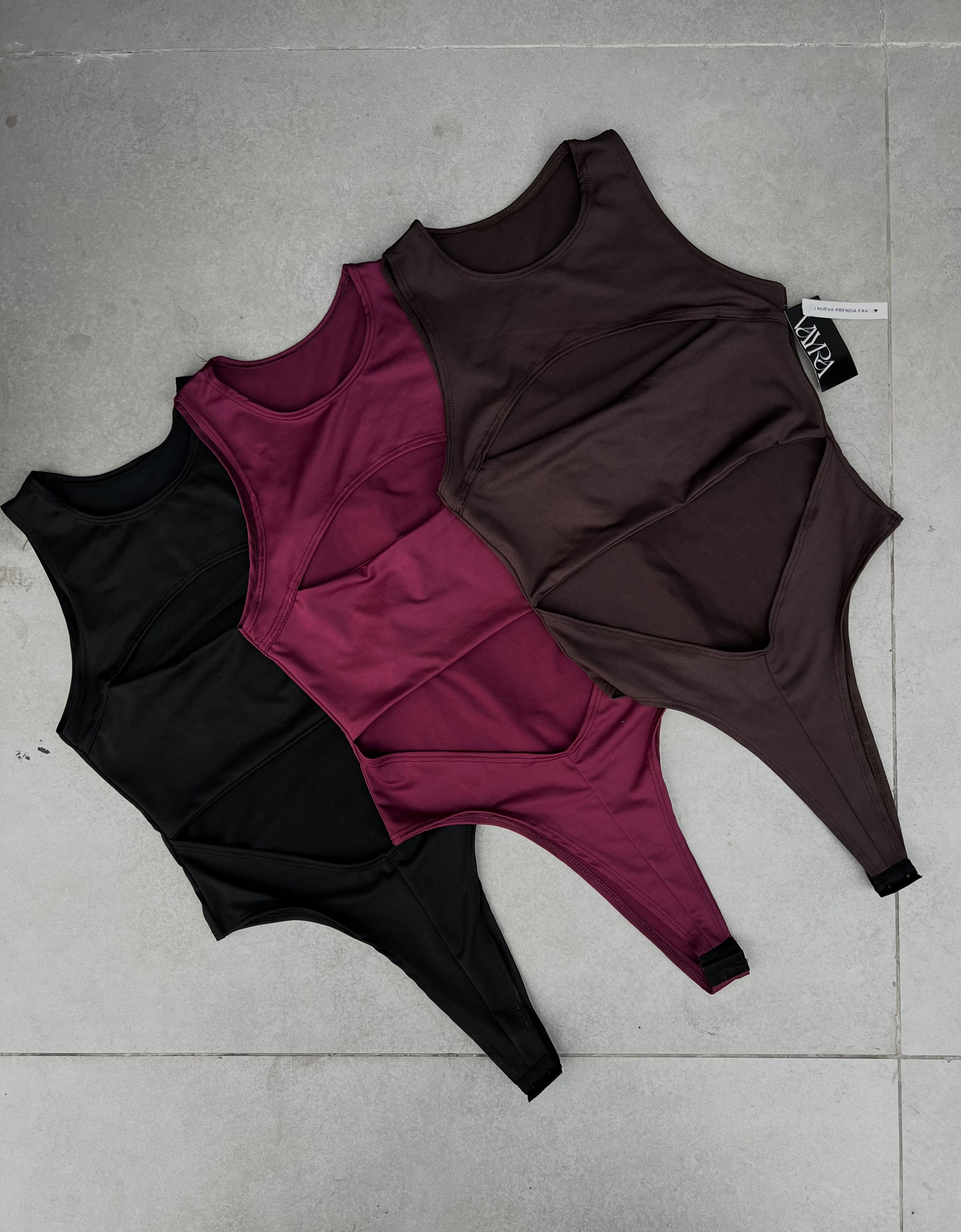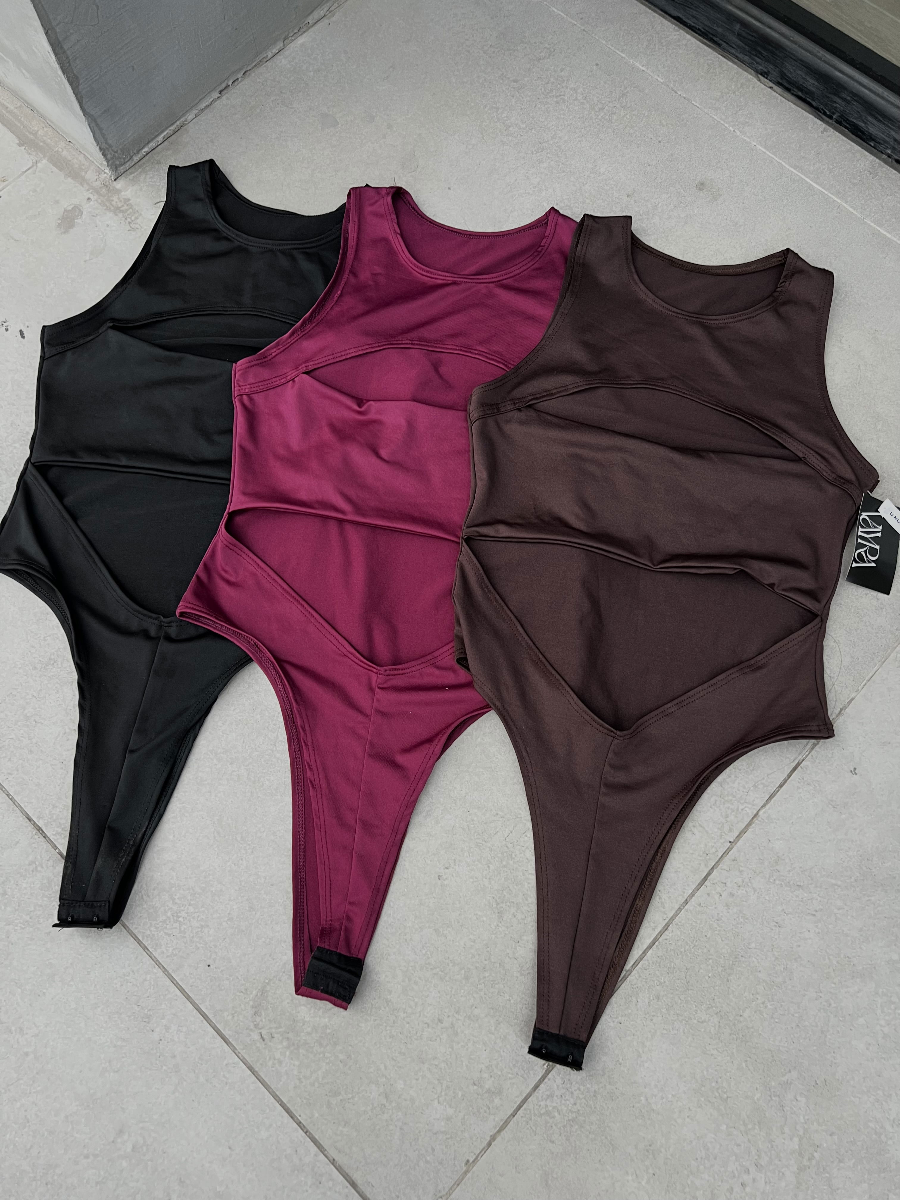 Body VAYRA lycra elastizada con cortes en el pecho Y abdomen, disponible en 3 colores